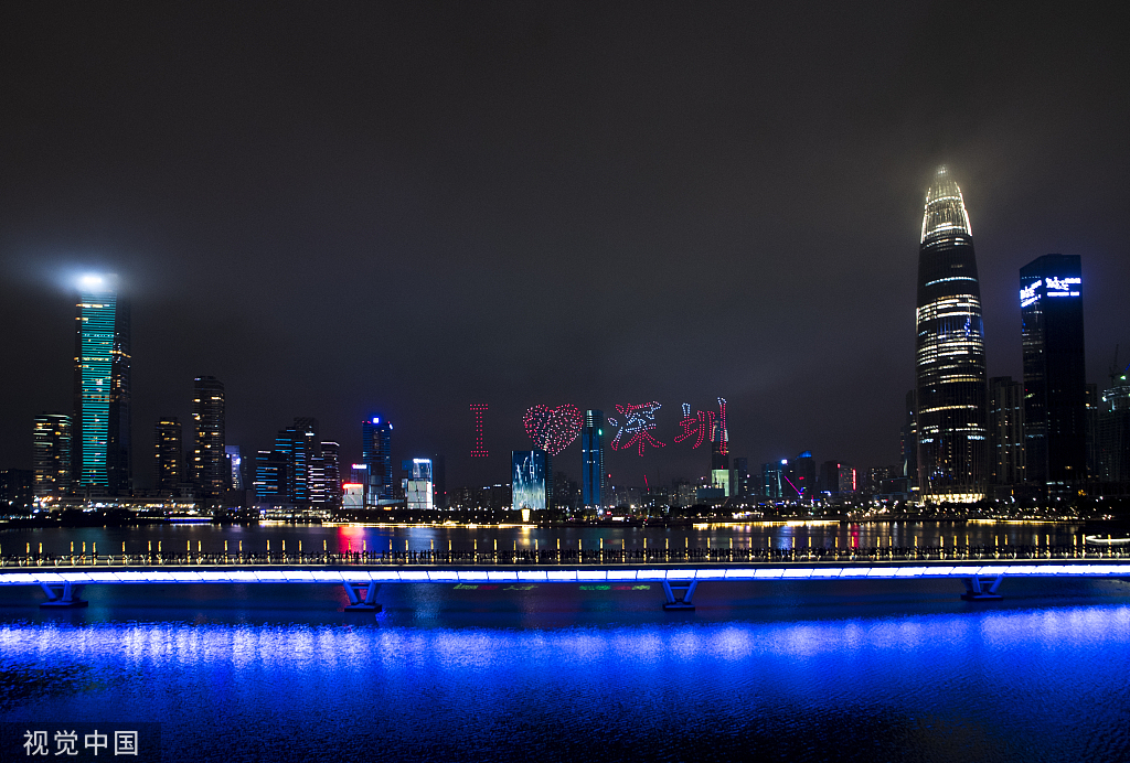 Drones spell out "I love Shenzhen" in the sky in Shenzhen on Aug 11, 2019. [Photo/VCG]