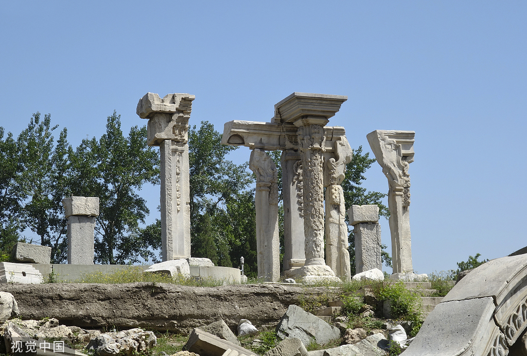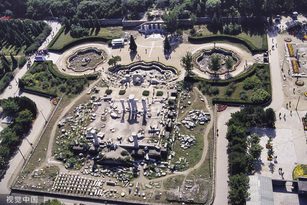 An aerial view of the remains of the Western style architecture in the Garden of Perfect Brightness [Photo/VCG]
