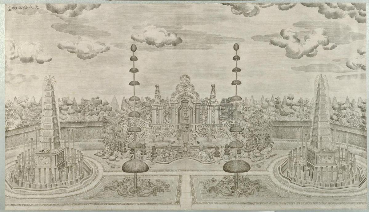 Facade of the Grand Fountains, from the copperplate engraved print album illustrating part of the Garden of Perfect Brightness, collection of the Palace Museum [Photo/dpm.org.cn]