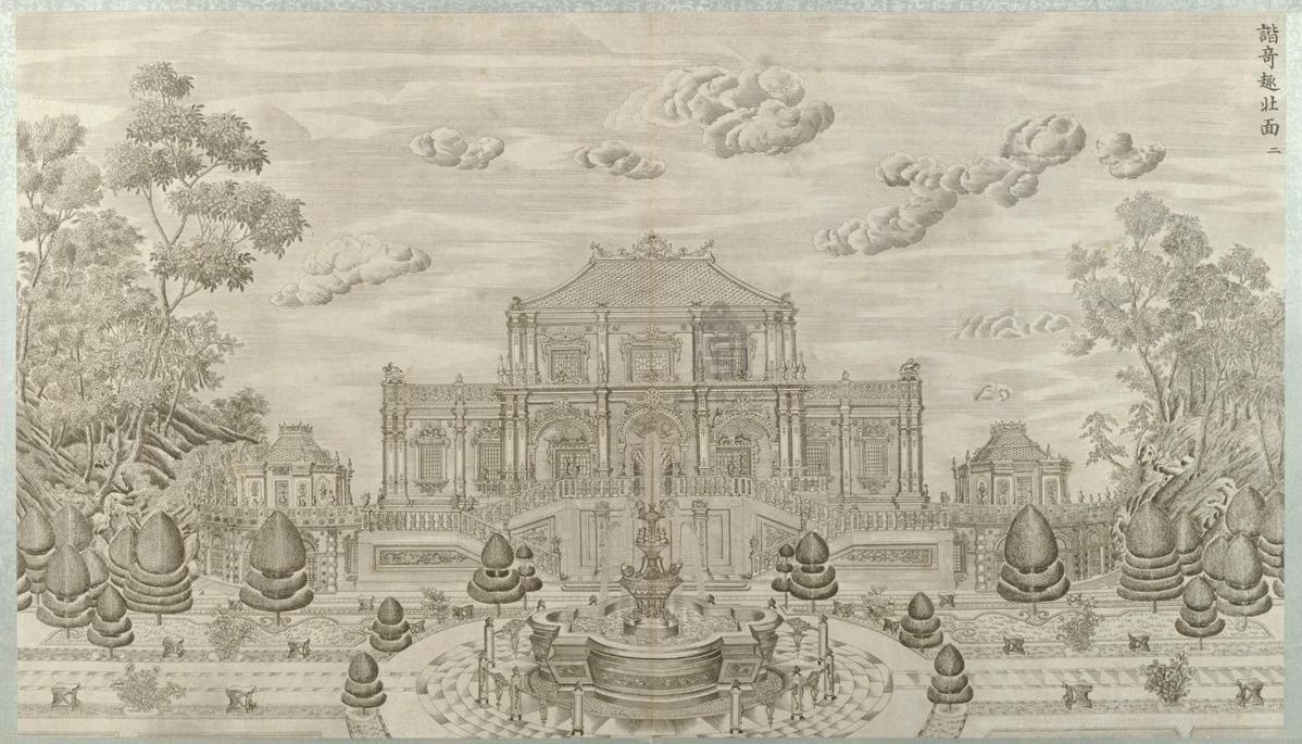 North side of the Fountain Hall of Wonderful Pleasures, from the copperplate engraved print album illustrating part of the Garden of Perfect Brightness, collection of the Palace Museum [Photo/dpm.org.cn]