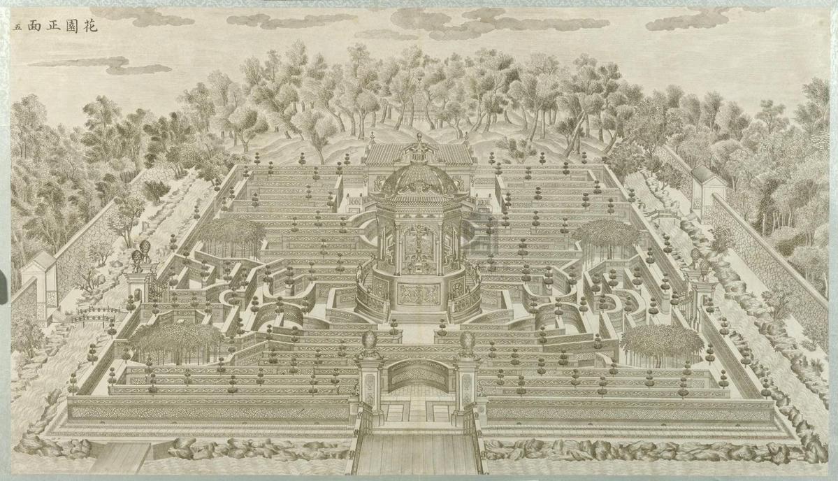 Originally the garden was a private villa of Yinzhen, the fourth son of the Kangxi Emperor (r. 1662-1722) and the future Yongzheng Emperor (r. 1723-1735). In the following decades, he and his successor, the Qianlong Emperor (r. 1736-1795), commissioned a series of projects to expand and enrich it. From 1747 on, Western Jesuits serving the Qing court in Beijing, including Giuseppe Castiglione (Chinese name Lang Shining, 1688-1766), Jean-Denis Attiret (Chinese name Wang Zhicheng, 1702-1768), Ignatius Sichelbarth (Chinese name Ai Qimeng, 1708-1780), and Pierre d'Incarville (Chinese name Tang Zhizhong, 1706-1757), participated in further design of the garden and its horticulture.