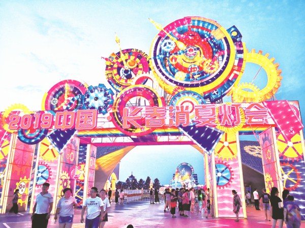 People were also treated to lantern shows in Changchun. More than 100 groups of lanterns are illuminating the 350,000-square-meter exhibition area at Changchun Movie Wonderland, offering a splendid summer night scene for visitors.