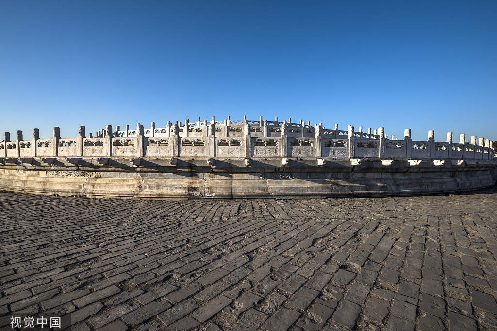 The circular mound was initially built up in 1530 as an altar decorated with blue-glazed tiles, and reconstructed in 1749 into a three-tiered balustraded marble terrace, the form it takes today. Diminishing in diameter from the bottom to the top, the altar was approached by stairs from the four cardinal directions. The number of the steps and bricks at each level of the terrace is either nine or a multiple of nine, a digit revered in imperial China as the largest single digit, to indicate the mightiness of Heaven.