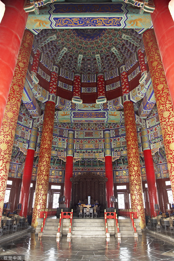 Emperors of the Ming and Qing dynasties prayed for good harvests in the first lunar month of each year. The hall was transformed from a rectangular building to a conically-capped triple-eaved round building after its inauguration in 1420. The current building dates to the late 19th century, and is designed with symbolic cosmological meanings: the blue color of the glazed tiles of the roofs symbolizes Heaven; the four central hypostyle columns symbolize the four seasons, while the twelve others around them symbolize the twelve months, and the twelve peripheral columns symbolize the twelve two-hour periods that constitute a day. It is the only extant example of a "Bright Hall" -- an architectural style described in ancient Chinese classics that bore political significance and was dedicated to resolute rulers for sacrifices or holding of grand audiences.