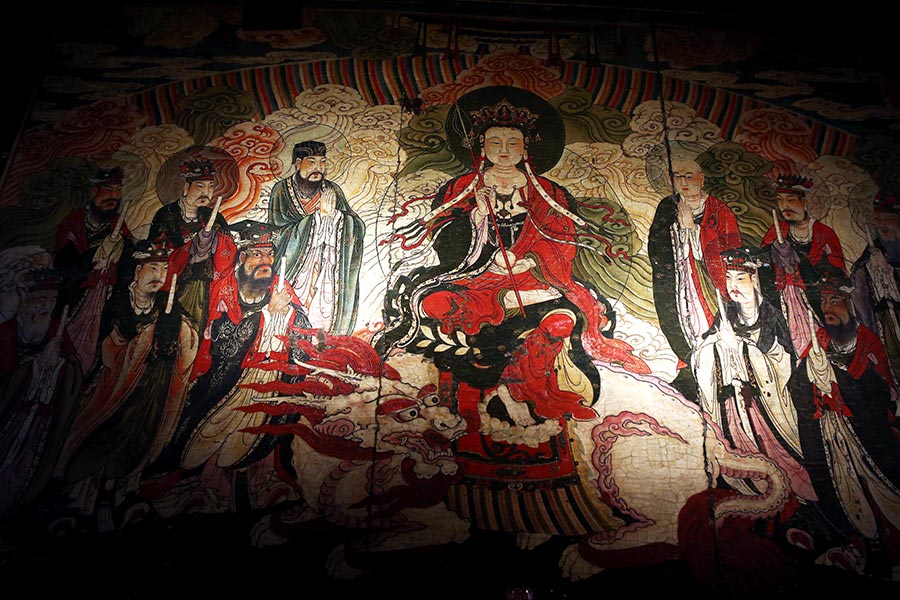 It is the main hall of the temple. It originally enshrined representations of Sakyamuni, the Buddha of Medicine, Amitabha, and the Eighteen Arhats. The rear part of the hall is a wing room which houses the Ming Dynasty mural Kṣitigarbha and Ten Kings of Hell.
