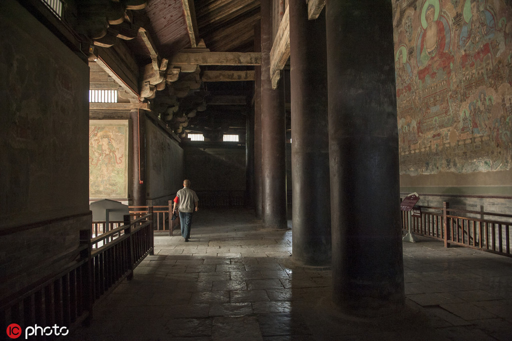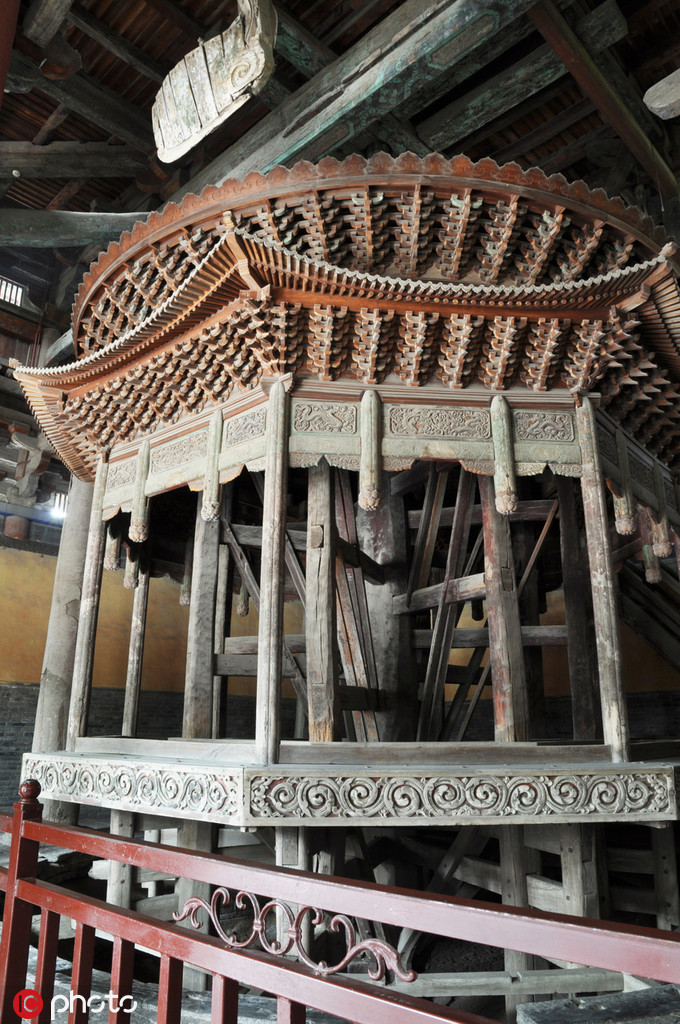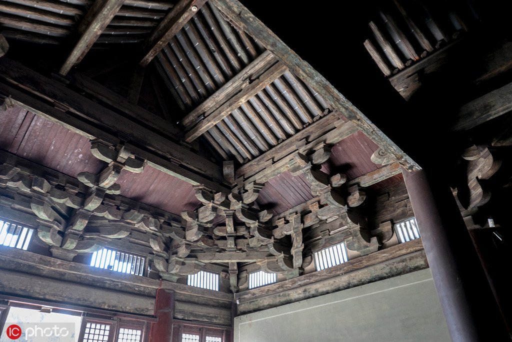 Interior wooden structure of the bracket sets ( dougong), datable to the 10th-12th century, bearing the load from the roof [Photo/IC]