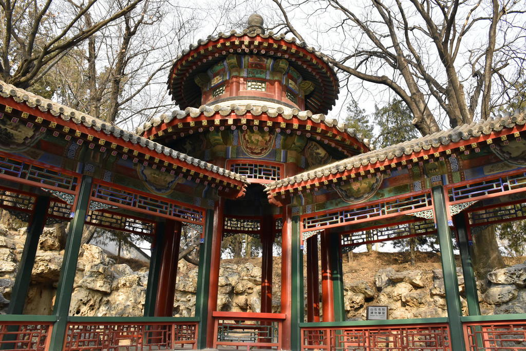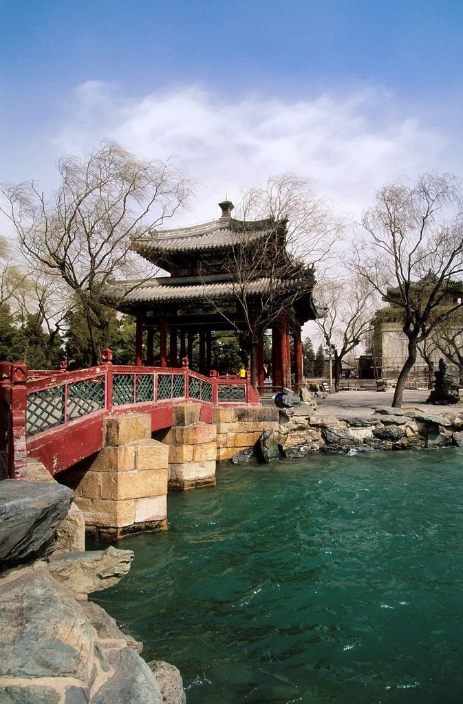 Modeled on the famous Garden of Lodging One's Expansive Feelings (Jichang yuan) in Wuxi, Jiangsu province, the Garden of Harmonious Pleasures was built in 1751. Burned down by Anglo-French forces in 1860, it was refurbished in 1892. Covered corridors, twisting and turning, connect towers, pavilions, halls, and bridges along the large pond. Roaming around the garden, one finds that each step forward leads to different scenery.