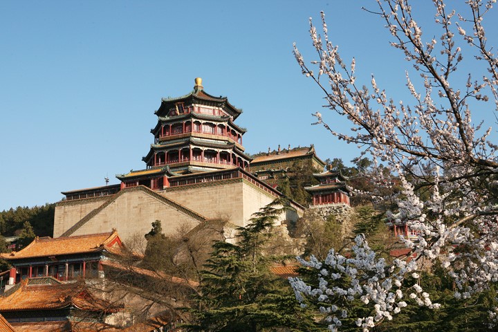 The Tower of Buddhist Fragrance perches on the side of the Hill of Myriad Longevity, overlooking Kunming Lake. [Photo/summerpalace-china.com]