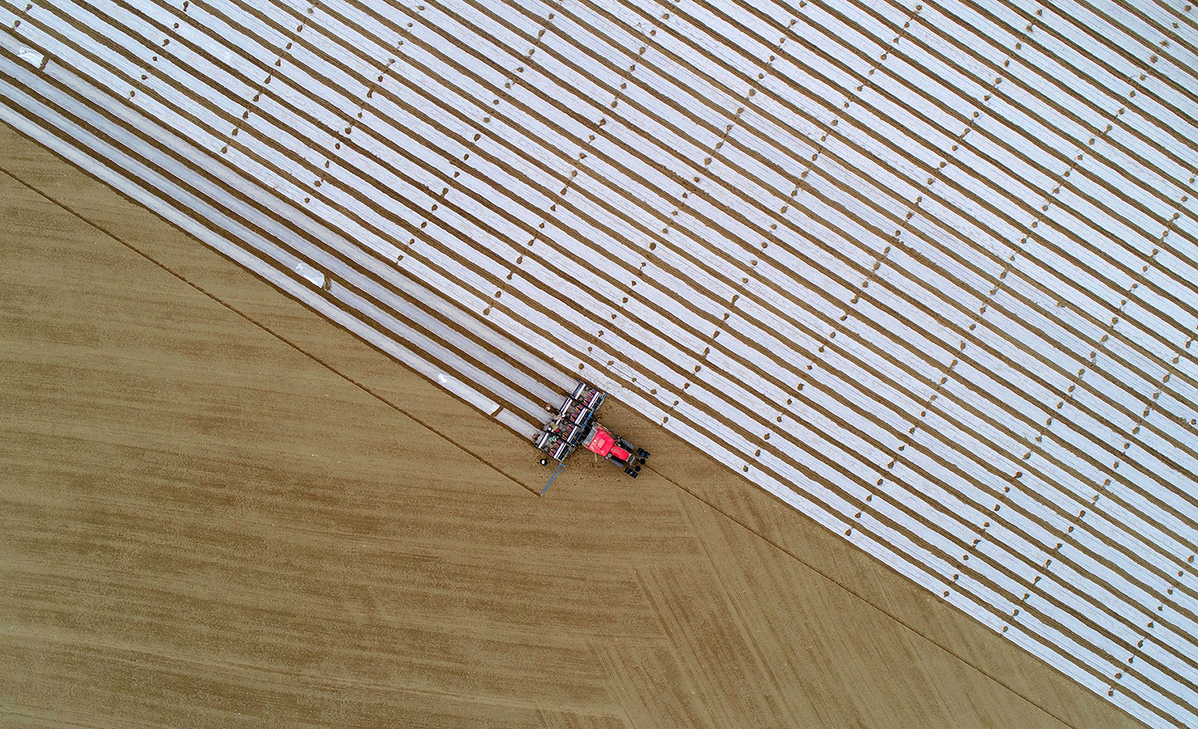 A machine sows cotton seeds at a field of Xinjiang Production and Construction Corps' Second Division in the Tarim Basin, Xinjiang Uygur autonomous region. [Photo/Xinhua]