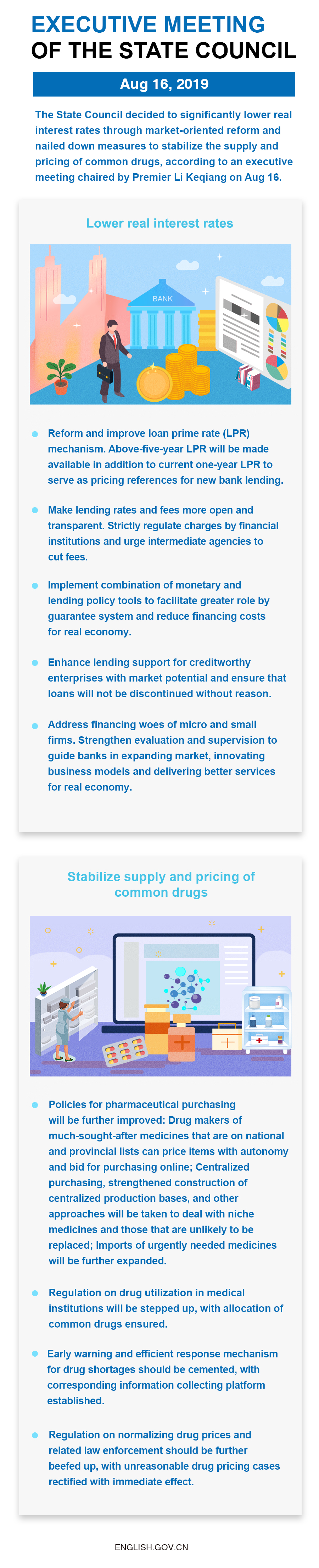 What State Council says about lowering real interest rate and stabilizing supply and pricing of common drugs