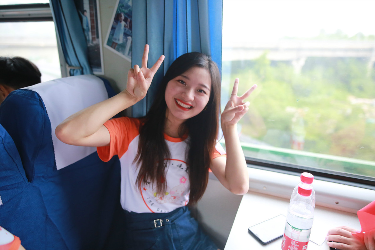 A single woman poses for a photo on the "Love-Pursuit Train" on Aug 10, 2019. [Photos by Su Zhigang and Hu Yafei/For chinadaily.com.cn]