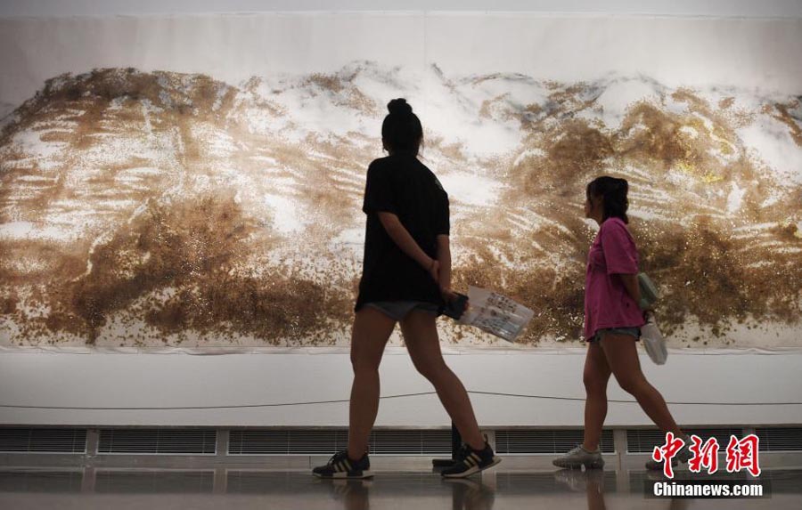 A paper artwork on display captures visitors' attention at the Zhejiang Art Museum in Hangzhou, East China's Zhejiang province, Aug 22, 2019. [Photo/Chinanews.com]