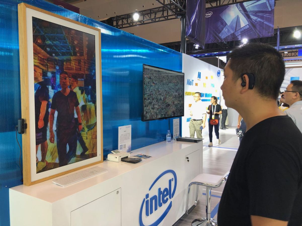 A visitor tries image style transfer technology, which is based on deep learning and transforms photo into painting, at Intel's booth at the Chongqing International Expo Center in Chongqing, Aug 26, 2019. [Photo by Wang Junwei/chinadaily.com.cn]