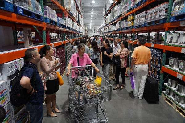 Customers shop at Costco's newly-open Shanghai outlet on Aug 27, 2019. [Photo by Gao Erqiang/Chinadaily.com.cn]