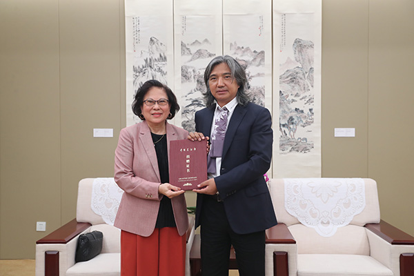 Wu Weishan, director of the National Art Museum of China, presents a donation certificate to Fan Changqian's family. [Photo by Jiang Dong/China Daily]