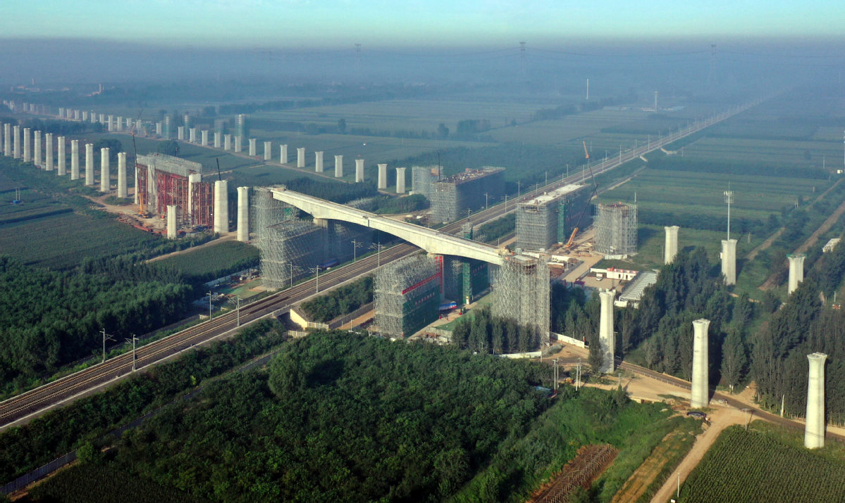 A railway bridge weighing 8,900 metric tons and measuring 78 meters long was rotated to its targeted position on Tuesday in Xiongxian, Xiongan New Area in North China's Hebei province, marking a big step in the construction of the Beijing-Xiongan intercity railway.