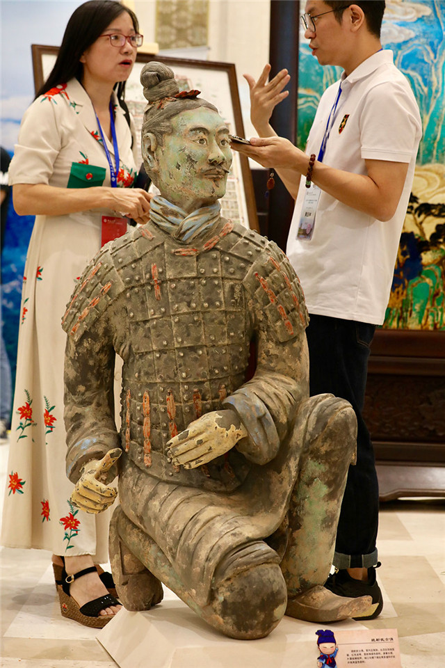 A 3D-printed model of one of the Terracotta Warriors is shown at an exhibition organized on the sidelines of a news conference held by the State Council Information Office, Aug 28, 2019. [Photo by Zhu Xingxin/chinadaily.com.cn]