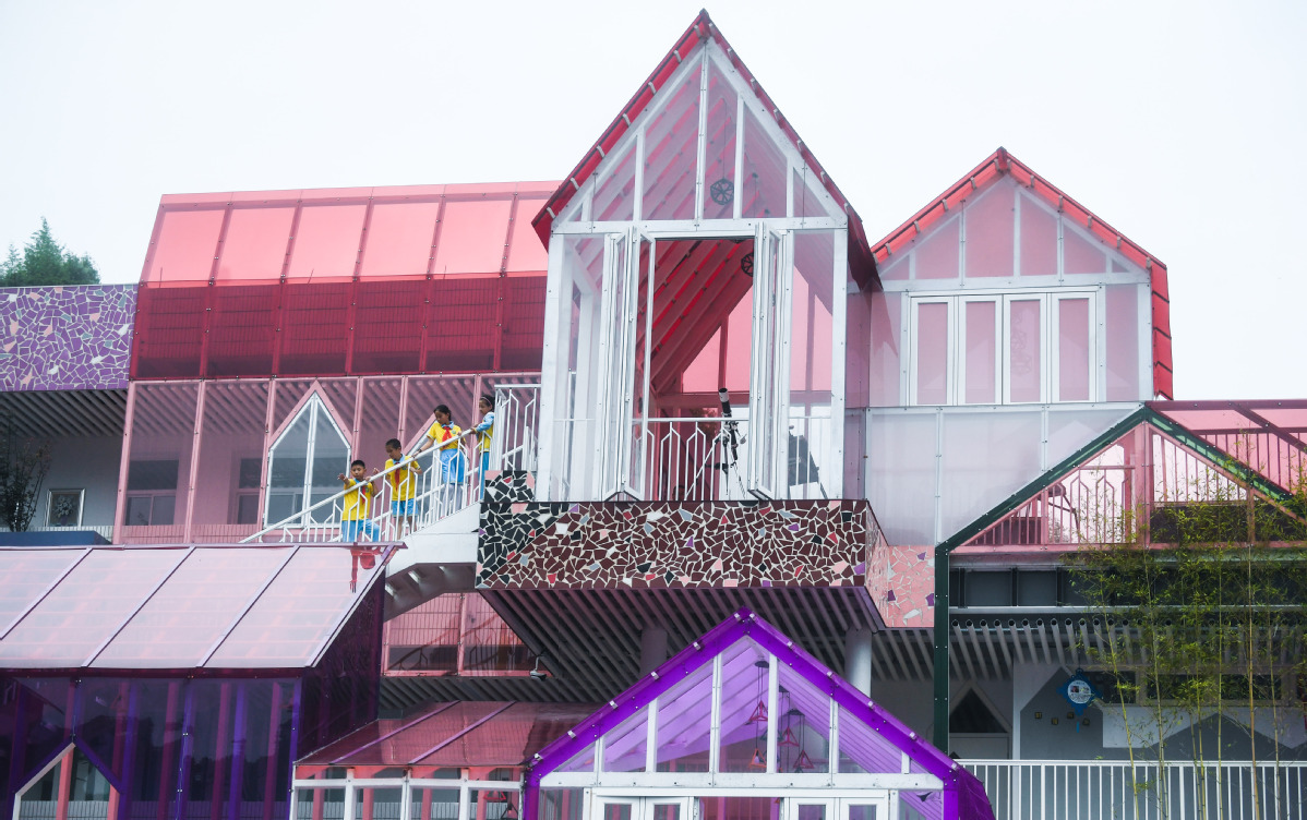Students stand on the stairs outside a teaching building in Central Primary School of Fuwen Township at Fuwen Village of Chun'an County in Hangzhou, capital of east China's Zhejiang Province, Aug. 31, 2019.