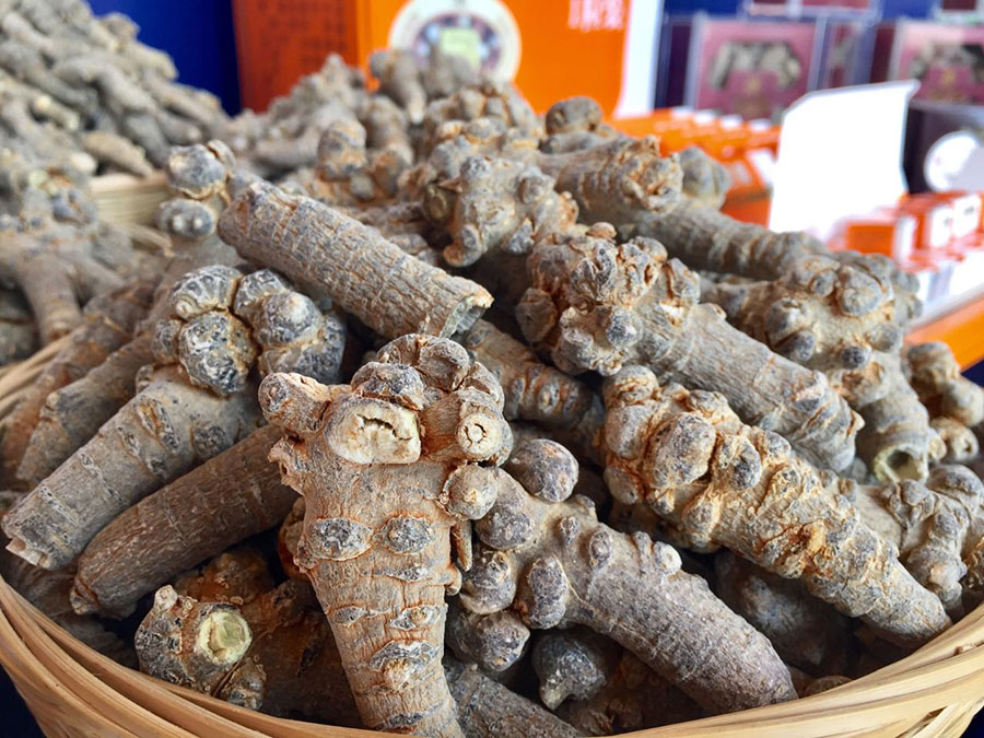 Panax ginseng produced at a planting base in Wenshan prefecture, Yunnan province. [Photo/provided to chinadaily.com.cn]
