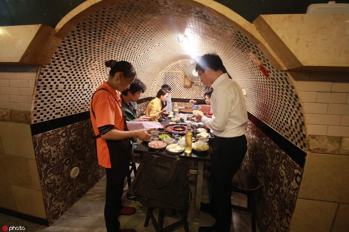 People enjoy hotpot in an air-raid shelter in Chongqing on Oct 7, 2018. [Photo/IC]