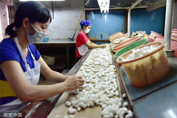 Sericulture and silk craftsmanship of China, centered in Zhejiang and Jiangsu provinces near Shanghai municipality and Chengdu in Sichuan province, reflect a traditional handicraft with a long history.