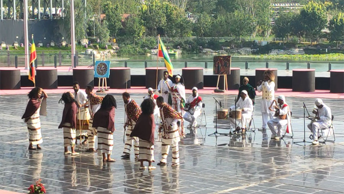 Ethiopian artists perform at the gala event to celebrate the country's New Year at an outdoor theater during the Beijing International Horticultural Exhibition in Yanqing District of Beijing, capital of China, Sept 6, 2019. [Photo by Dai Yuanyuan/chinadaily.com.cn]