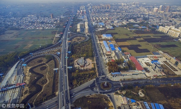 An aerial photo shows Rongcheng county of the Xiongan New Area on Oct 26, 2017. [Photo/VCG]