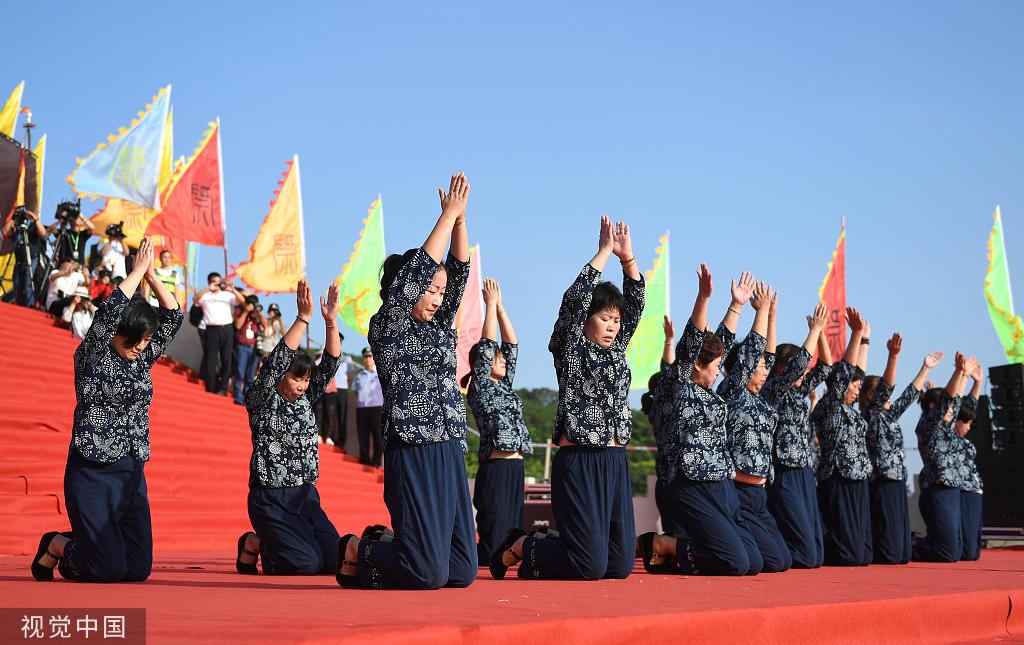 A grand sea sacrifice ceremony is held in Xiangshan county of Ningbo, East China's Zhejiang province, on Sept 15, 2019. [Photo/VCG]