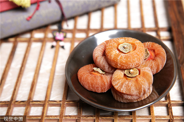 Xi'an persimmon cake, also known as crystal persimmon cake, is processed with "crystal persimmon" grown in Lintong District. Xi'an persimmon cake is characterized by a golden surface, sweet flavor, and the fragrance of osmanthus.