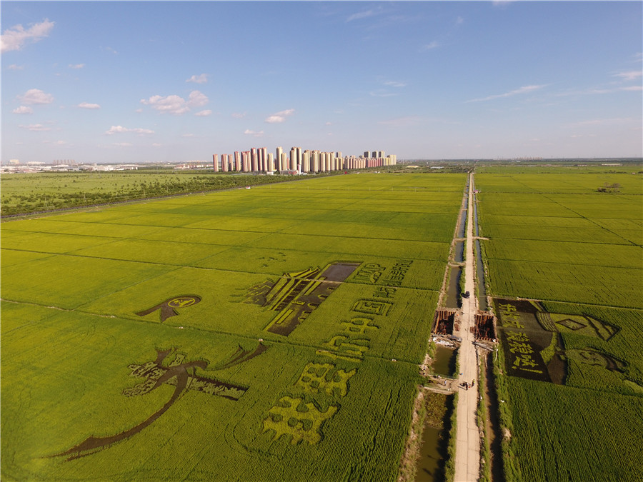 Local farmers in Wangwenzhuang township in Xiqing district, North China's Tianjin, trimmed and shaped a paddy rice field into the shape of popular cartoon figures and greetings for the country, including "I love you, China", to celebrate the upcoming Farmers'Harvest Festival on Sept 23 and the country's 70th anniversary on Oct 1.