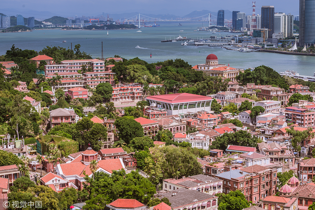 An aerial view captures a scene on Gulangyu Island in Xiamen, Fujian province, on Oct 13, 2017. [Photo/VCG]