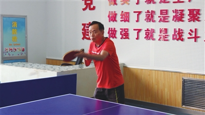 In a ping-pong room in the Yinchuan labor union building in Ningxia Hui autonomous region, Li is practicing ping-pong, which is part of his daily routine.