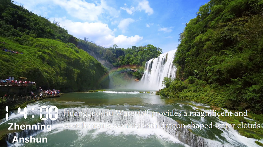 Huangguoshu Waterfall provides a magnificent and everchanging scenery with dragon shaped water clouds