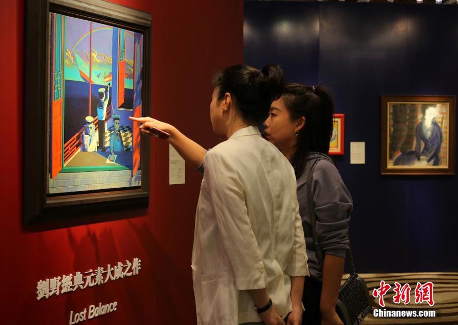 Visitors study a painting to be auctioned during the China Guardian Hong Kong Autumn Auctions 2019 at a preview exhibition in Beijing, Sept 17, 2019. This season's auctions will feature artworks collected worldwide, including Chinese paintings and calligraphy, 20th century and contemporary Asian art, ceramics and jewelry. [Photo/Chinanews.com]