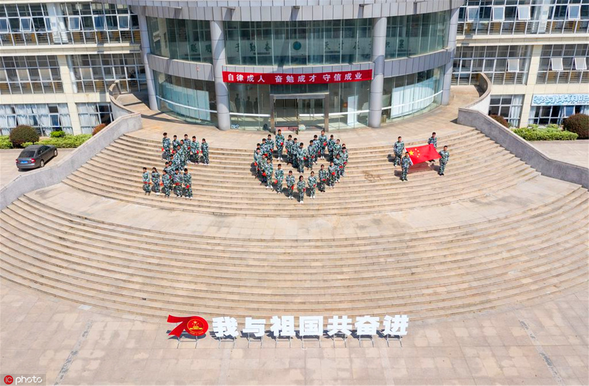 More than 500 freshmen at Jiangsu Vocational College of Agriculture and Forestry participate in a Communist Youth League event to commemorate the 88th anniversary of the "September 18 Incident". [Photo/IC]