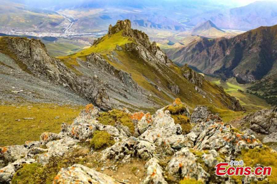 Aerial photo shows the beautiful landscape in Qilian county, Haibei Tibetan autonomous prefecture, Qinghai province in September. The small town nestled near the mountains surrounded by colorful plant life provides a great autumnal view. [Photo/China News Service]