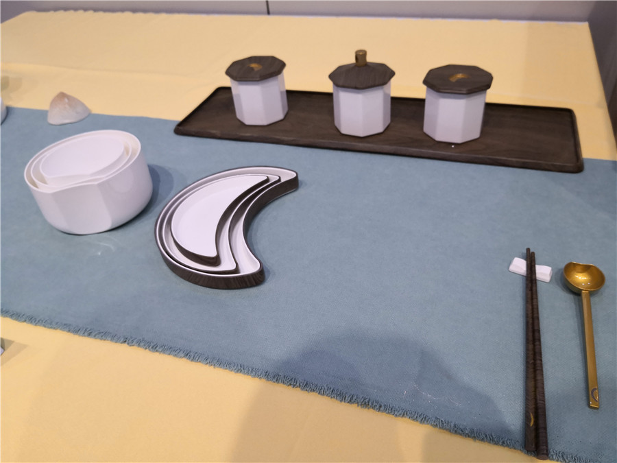 Dunhuang-themed tea ware and table ware are on display. [Photo by CECE/For chinadaily.com.cn]