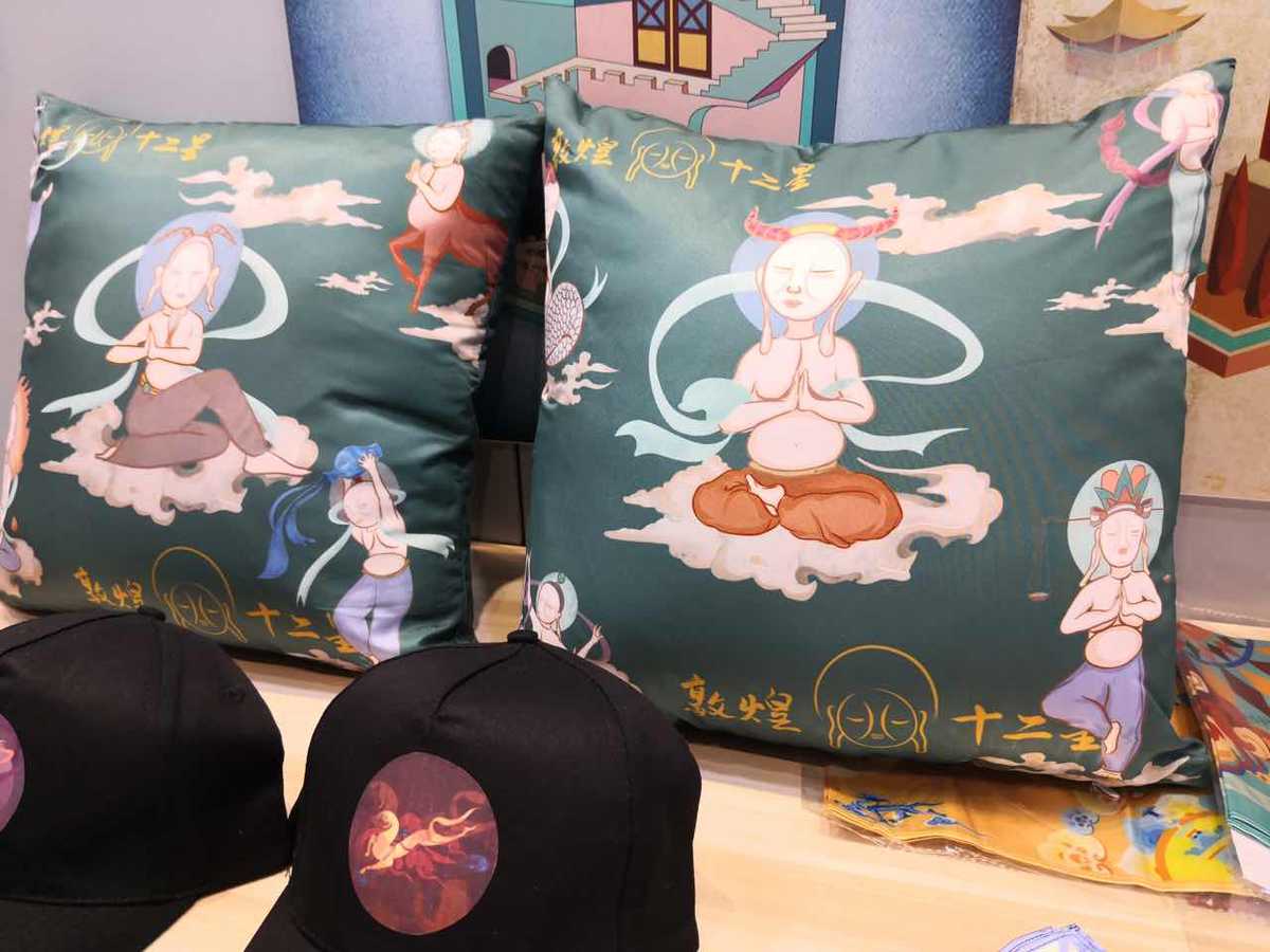 Dunhuang-themed cushions are on display. [Photo by CECE/For chinadaily.com.cn]