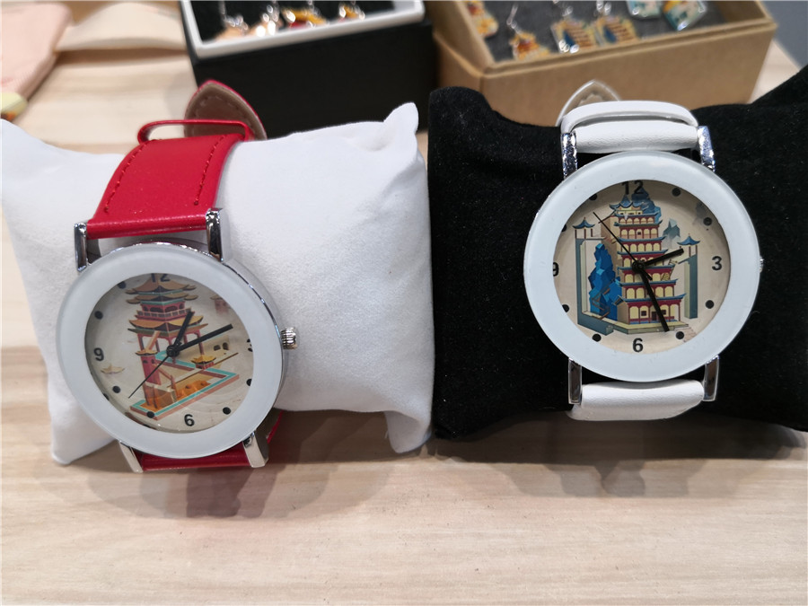 Dunhuang-themed wristwatches are on display. [Photo by CECE/For chinadaily.com.cn]