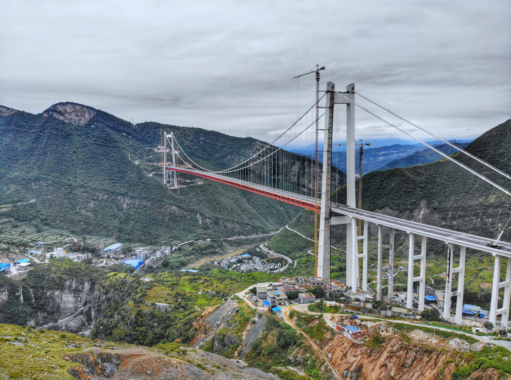 An aerial photograph overlooks the Chishui River bridge. [Photo by Luo Jiangxiong/For chinadaily.com.cn]