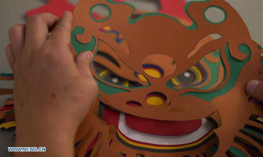 Paper carving artist Zhang Shoujiang joins together the parts of a piece of work in his studio in Ganzhou, East China's Jiangxi province, Sept 19, 2019. Zhang has devoted himself to the art of paper carving for 19 years. Presented in a three-dimensional manner, the majority of his works focus on the architectural culture of the local Hakka community. 19, 2019. Zhang has devoted himself to the art of paper carving for 19 years. Presented in a three-dimensional manner, the majority of his works focus on the architectural culture of the local Hakka community.[Photo/Xinhua]