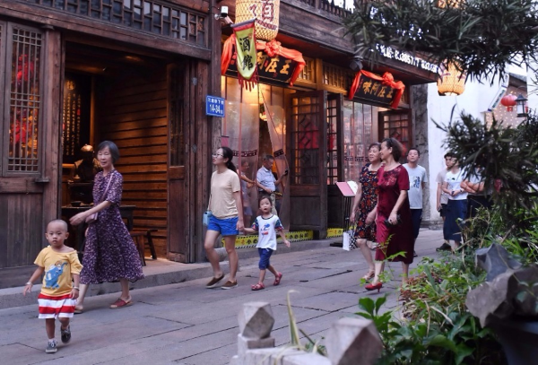 People visit the Xiahang historic area in Fuzhou, East China's Fujian province, Sept 15, 2019. [Photo/Xinhua]