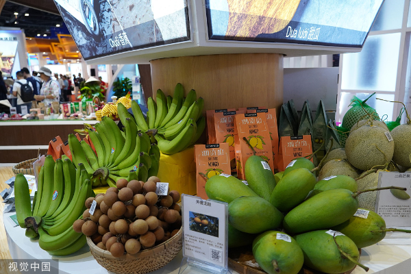 Fruits from the Vietnam are displayed at the Vietnam's booth at the 16th China-ASEAN expo in Nanning, on Sept 21, 2019. [Photo/VCG]