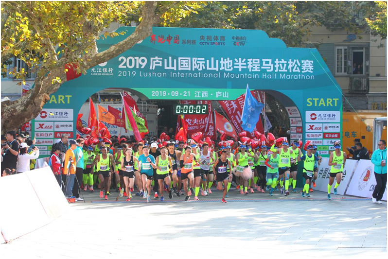 Runners start to race during the Lushan International Moutain Half Marathon on September 21, 2019.