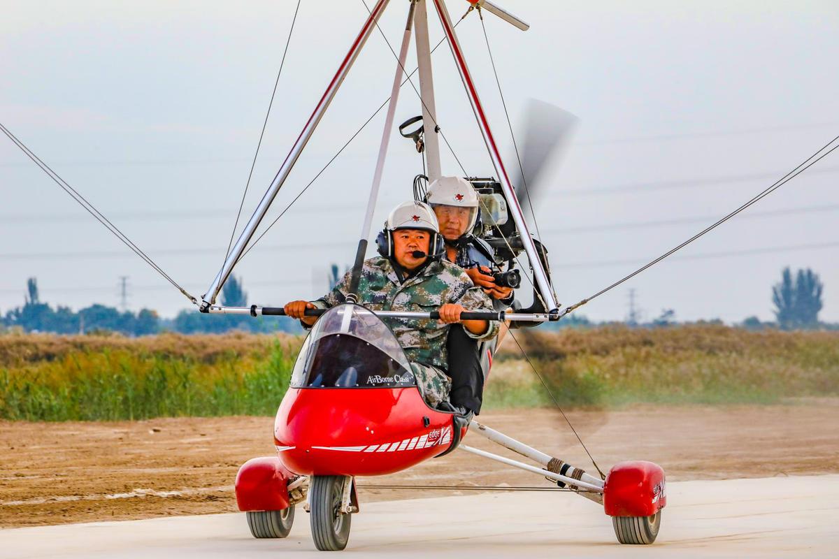 Liu Yibing and his partner conduct a test flight during the 3rd Ningxia Aviation Sports Science Festival, hosted on Sept 22 in Helan county of Yinchuan, Ningxia Hui autonomous region. [Photo provided to chinadaily.com.cn]