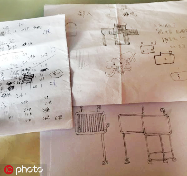 The design for the bar drawn on paper by Shen Xilai, Sept 18, 2019. [Photo/IC]