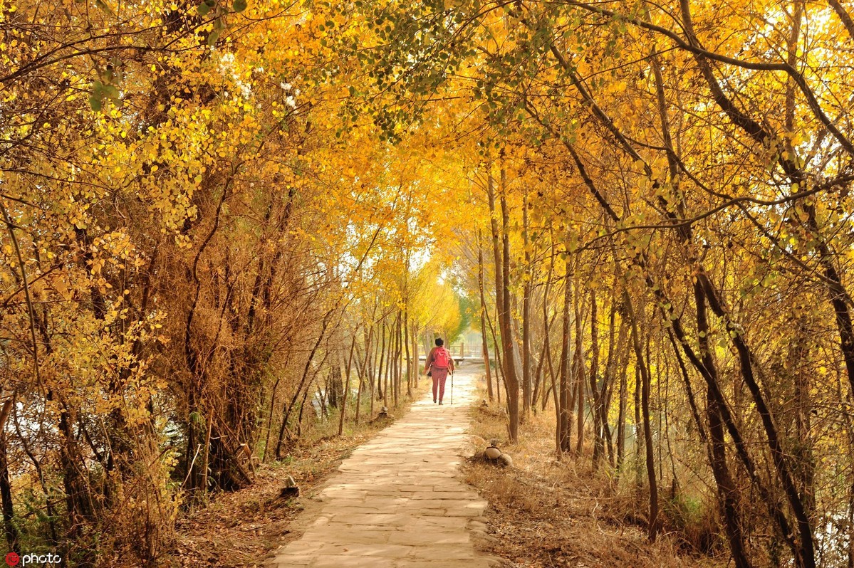 Jinhuyang National Forest Park, located 36 kilometers southwest away from Zepu county, covers an area of 26.67 square kilometers, with a natural populus euphratica forest of 13.33 sq km. The area has a variety of vegetation types, stretching 489 hectares of natural forest, with a total of 27 families, 39 genera and 51 species of plants growing. It is home to many kinds of wild and rare animals also, including hoopoe, saker, as well as alcedo atthis bengalensis.