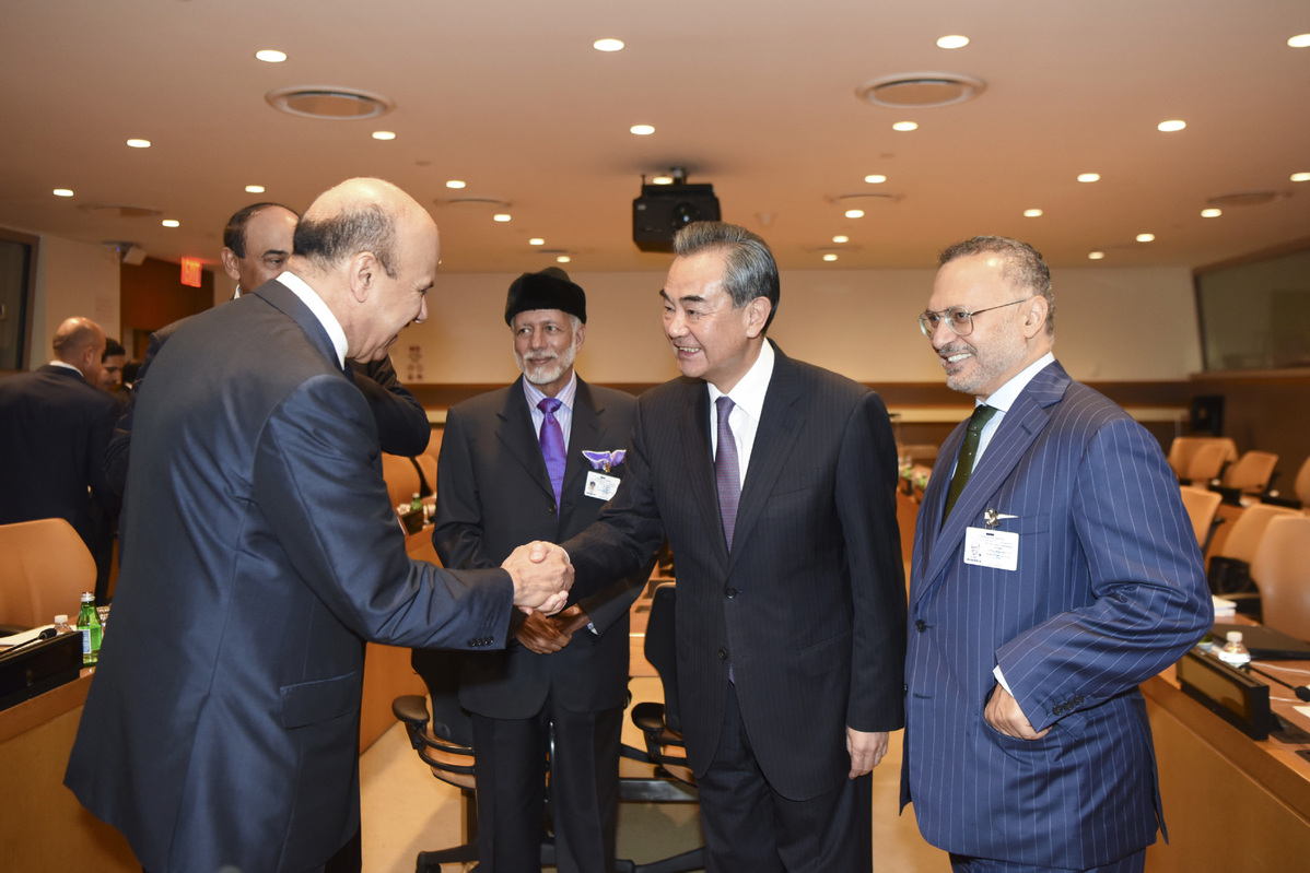 China's State Councilor and Foreign Minister Wang Yi met with top diplomats from three of the six GCC member countries - Kuwait, Oman and the United Arab Emirates, or UAE - at the United Nations headquarters in New York on Tuesday.
