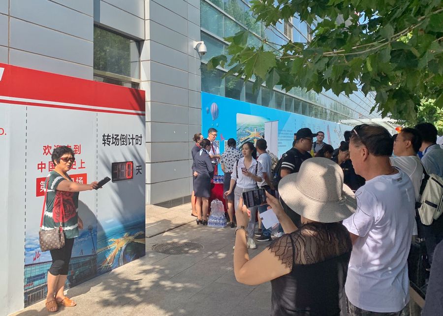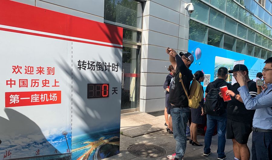 Passengers take photos of a board marking the countdown to the cessation of operations of Nanyuan Airport at the airport in Beijing, capital of China, Sept. 25, 2019. (Xinhua/Li Xin)