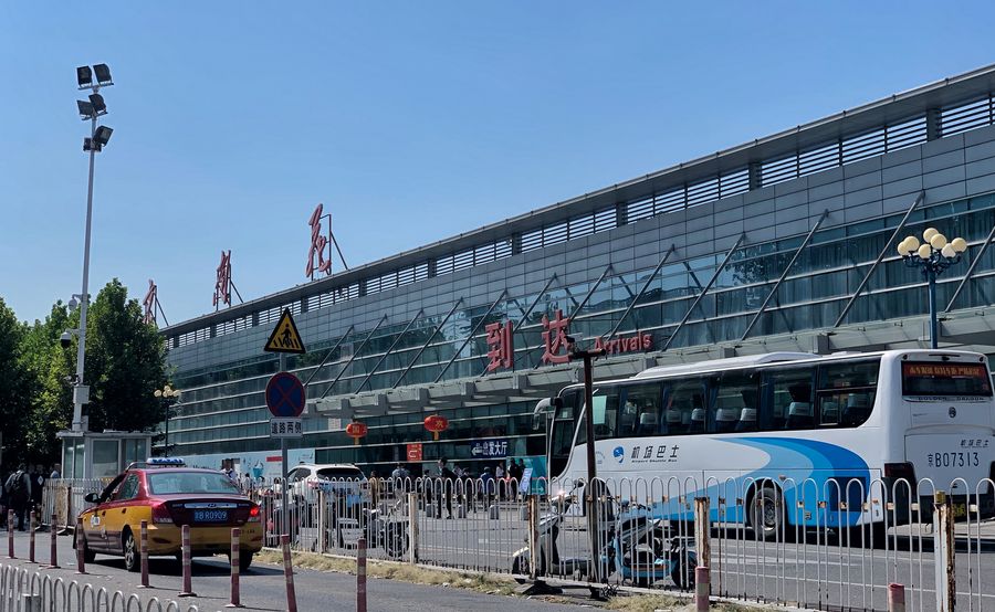 Photo taken on Sept. 25, 2019 shows the exterior of the arrival hall at Nanyuan Airport in Beijing, capital of China. (Xinhua/Li Xin)